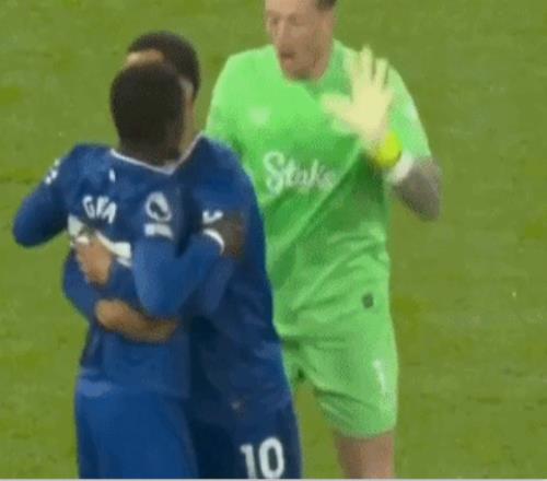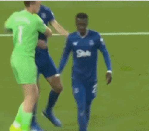 埃弗顿门将皮克福德看到了全部过程,迅速上前将两人拉开。盖耶和基恩依旧斗嘴,盖耶转过身还想揍基恩,被皮克福德死死抱住。另一名埃弗顿球员恩迪亚耶,也上前好言相劝。