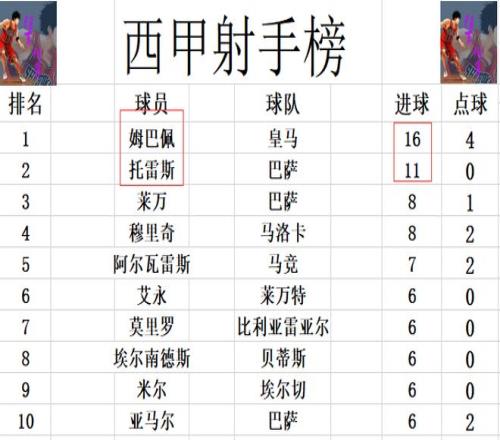 射手榜方面,姆巴佩16球高居榜首,托雷斯11球紧随其后。莱万,穆里奇8球并列第3,阿尔瓦雷斯7球第5。亚马尔,米尔,埃尔南德斯等人6球刚好挤入前十。