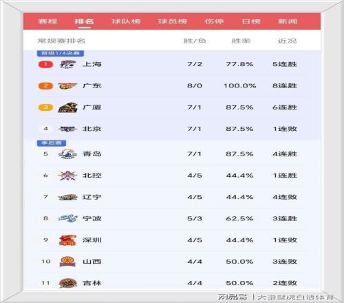 然而上海队已经豪取4连胜,状态正佳,排名也稳居前5行列。