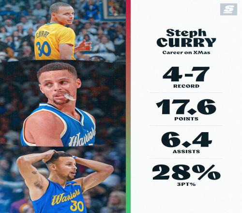 库里圣诞大战4胜7负,场均17.6分6.4助攻&三分命中率仅28%